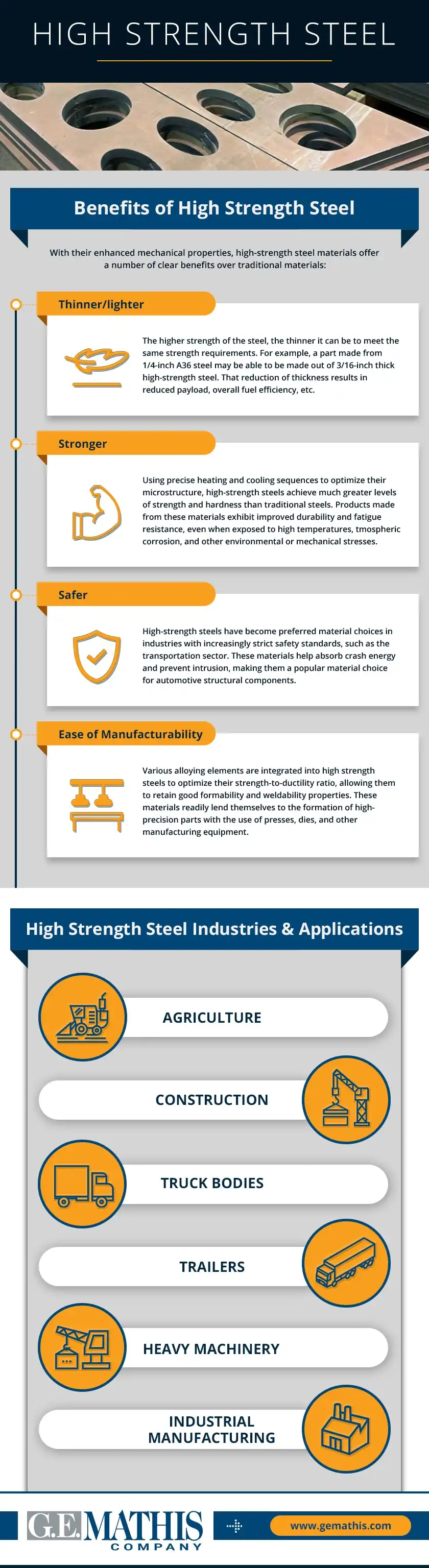 High-strength steel is the ideal solution for challenging operations requiring a strong, lightweight material that can withstand extreme environments. With over 120 years of experience, G.E. Mathis Company offers innovative custom solutions for a global client base. Contact us or request a quote to learn more about our capabilities and products.